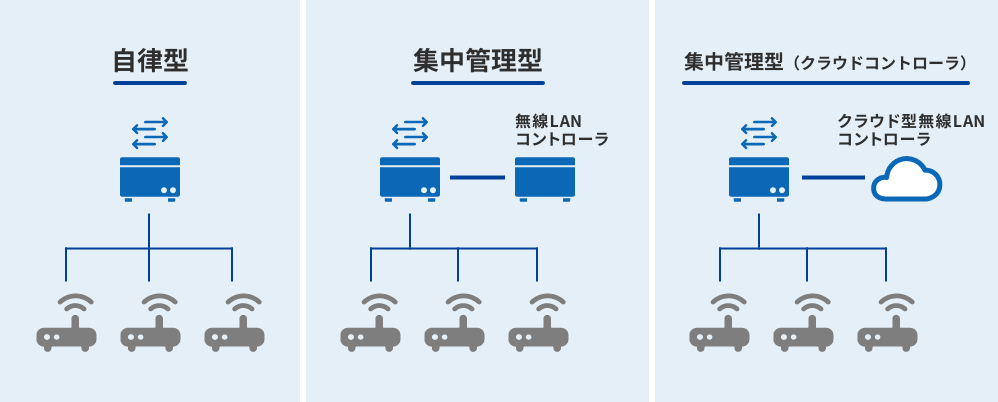大規模オフィスの場合:複数拠点にまたがり多数のアクセスポイントが必要なときは、運用・管理を自動化する「集中管理型」を利用