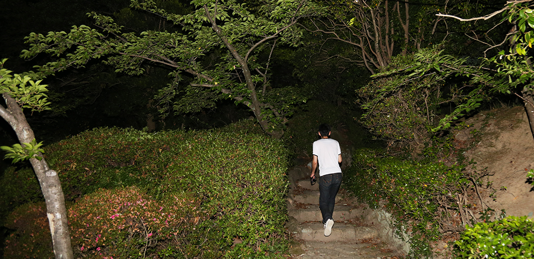 時刻は22時過ぎ。ワクワクドキドキの中、捜索開始!カブトムシが生息している可能性が高いといわれている「クヌギ」や「ナラ」の木を中心に探していきます。「クヌギ」や「ナラ」の木は「どんぐり」がなる木と覚えておくと探しやすいですね。