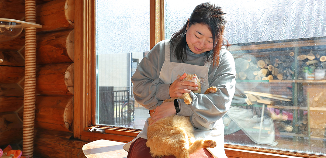 「NPO法人あんじょう地域ねこの会」では地域猫の相談を受けている山本さん。保護猫に関する悩みが多いことを知り、保護猫が新しい飼い主と出会うまでの居場所をつくりたいと、2019年に「ねこらぼ」をオープンしました。