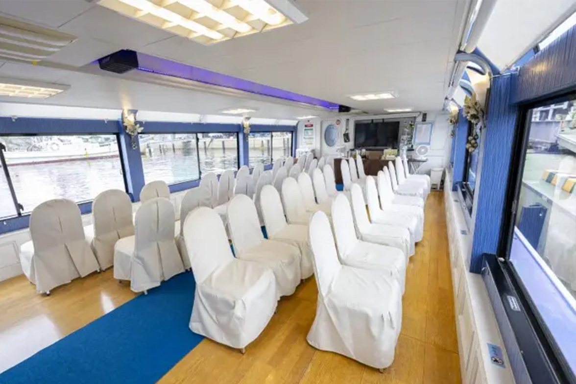 スタッフさんの案内に従って順番に桟橋を進み、いよいよ遊覧船「マリンリンクス」へ乗り込みます。これから始まるクルージングにワクワクしますね!