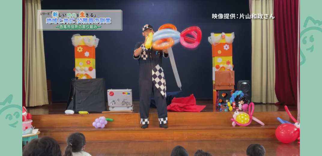 趣味でバルーンアートを行っていた片山さんは、副業制度が始まる前も市役所子ども部からの依頼で保育園でのバルーンショーを行っていました。