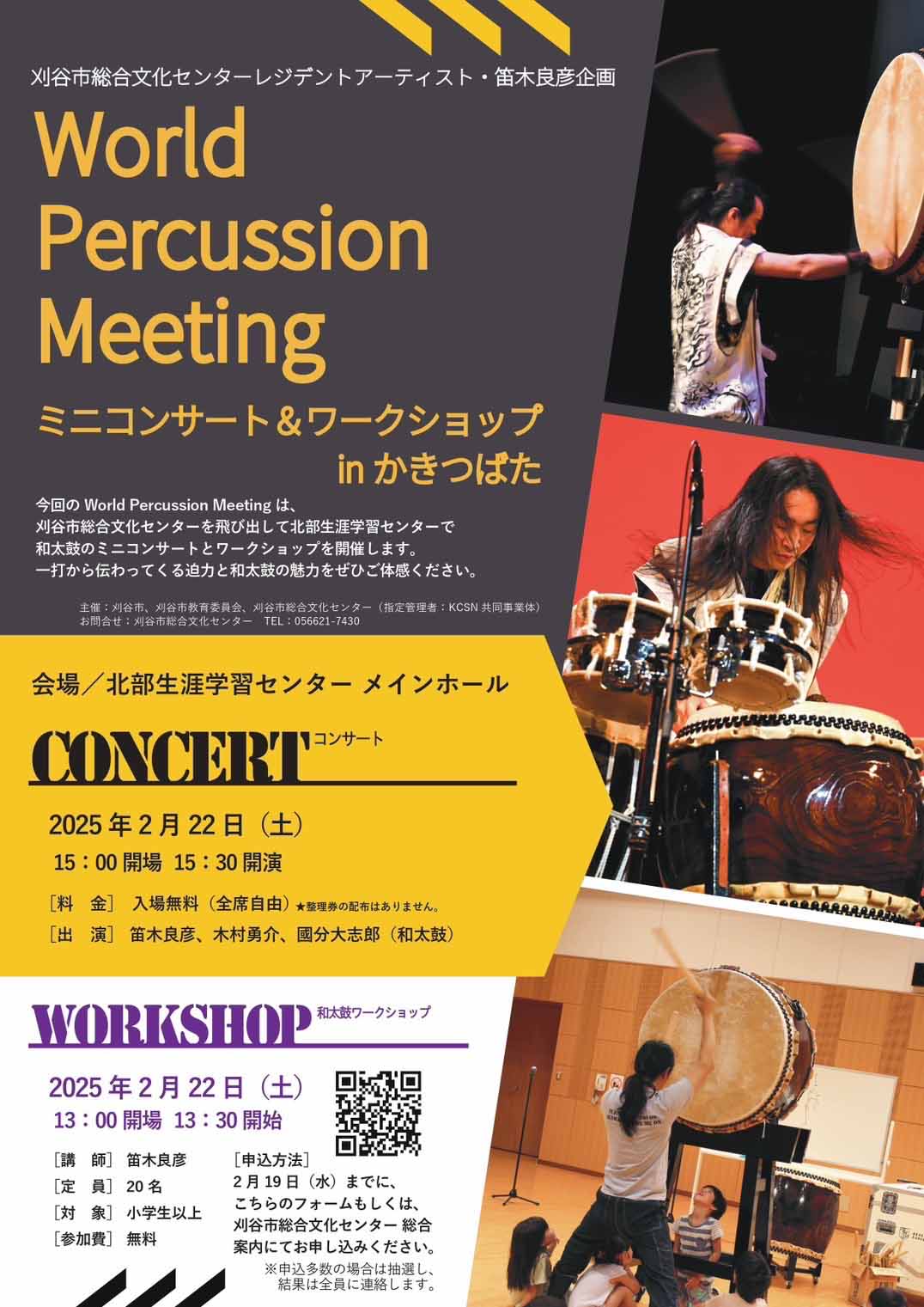 World Percussion Meeting/15:30~16:30(15:00開場)/北部生涯学習センター「かきつばた」(愛知県刈谷市井ケ谷町松ケ崎6-26)