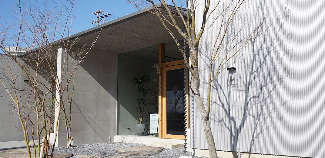 お店の入り口は、店舗に向かって右側の大きなガラスの引き戸。「どこから入るのかな?」と一瞬迷ってしまいそうですが、植木の裏にひっそりとたたずむ「hachidori cafe」のロゴが目印です。