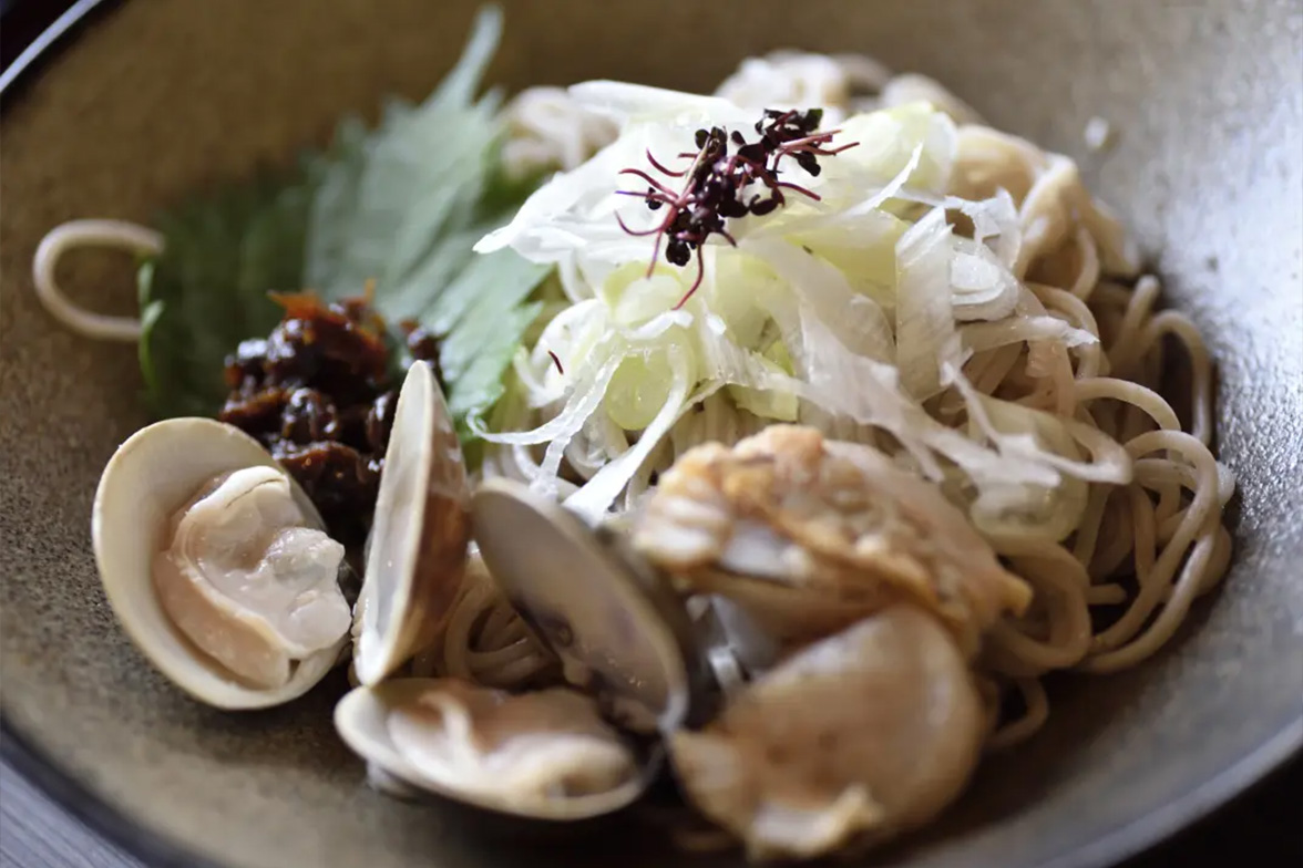 海の恵みを感じる魚や貝、海老、そして山の恵みを象徴する鴨や鶏が、蕎麦やうどんの上で美しく彩りを添えています。見た目の美しさと上品な味わいは、口の中で至福のハーモニーを提供してくれます。