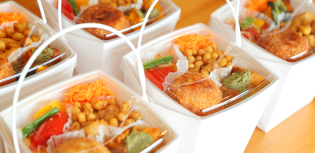 お弁当の看板商品は「SOLDELI BOX 695円(税抜)」。手持ちがついた弁当ボックスで、見た目もかわいい!揚げ物にはオリーブとひまわりのブレンドオイルを使うことで、さっぱりした味わいに。きび砂糖を使用、野菜やお肉は全て国産、ごはんは玄米の五分づき米と、食材や調味料選びに気を配っています。また、好みや予算に応じて自分だけのカスタマイズ弁当も注文可能。予約制でオードブルもあります。