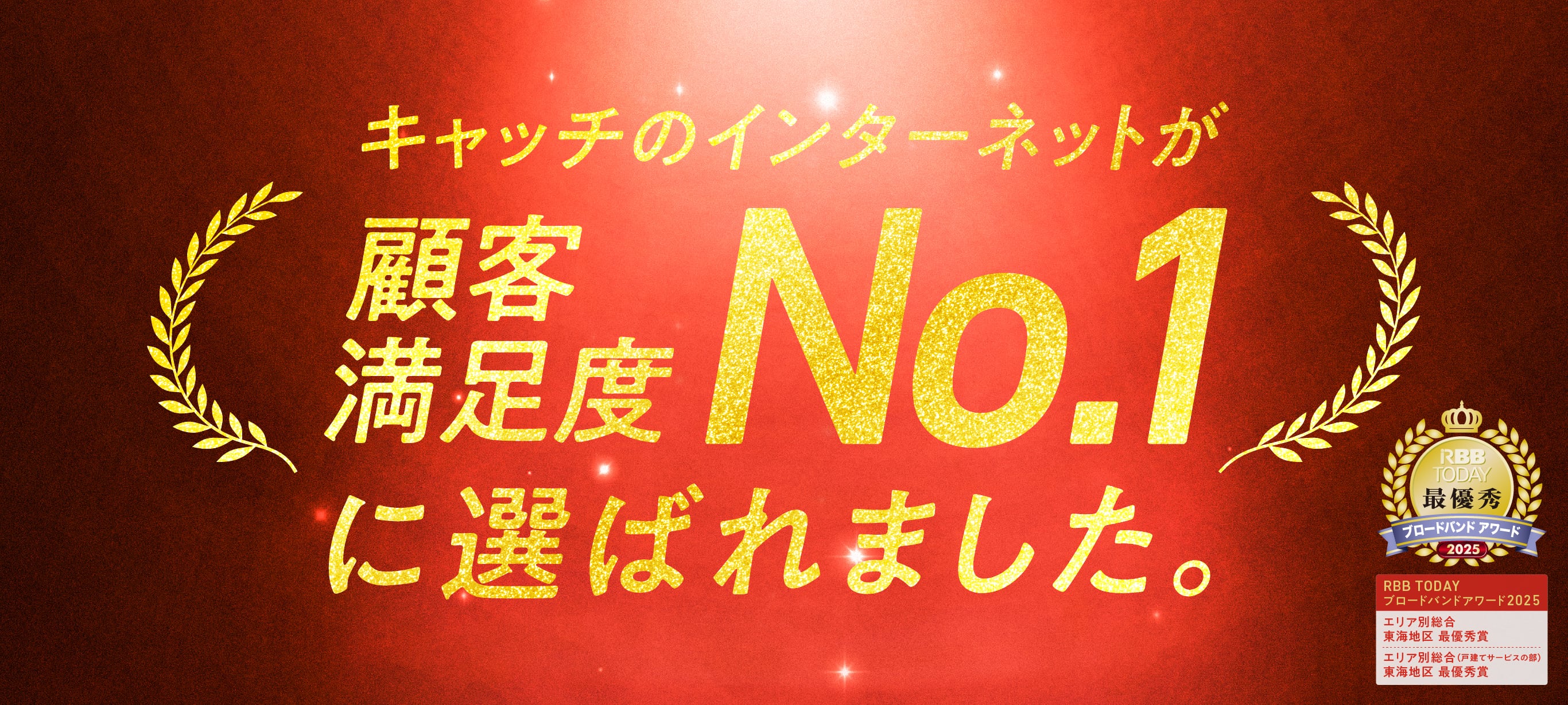 株式会社イードが主催する「RBB TODAY ブロードバンドアワード2025」のキャリア部門「エリア別総合」「エリア別総合(戸建てサービスの部)」において、キャッチのインターネットサービスが、ユーザーの皆さまの投票により東海地区《最優秀賞》を受賞いたしました。