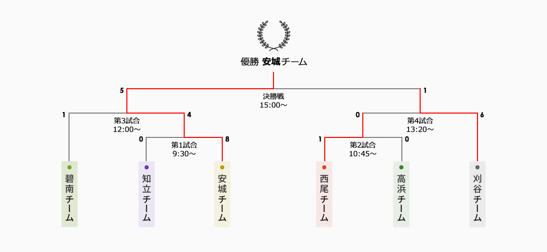 | 決勝戦 15:00~ | 安城チーム | 5 - 1 | 刈谷チーム |