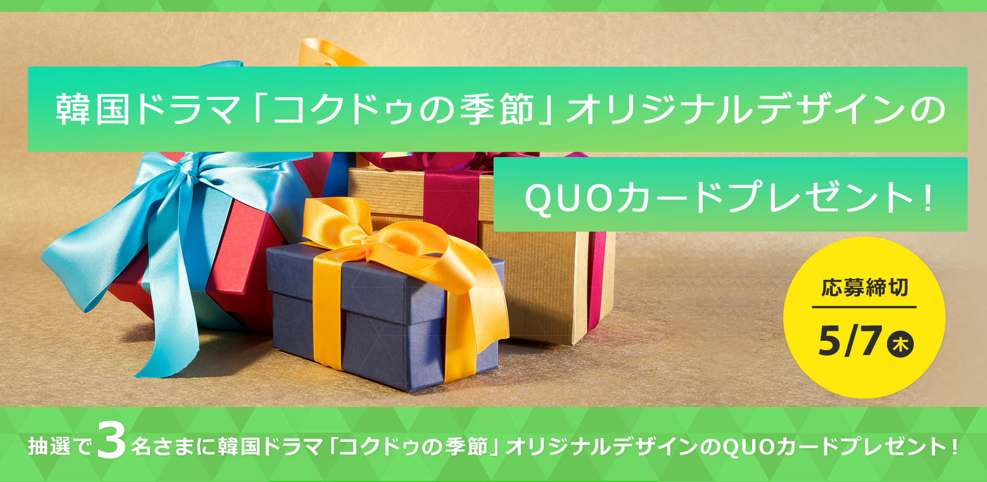 韓国ドラマ「コクドゥの季節」オリジナルデザインのQUOカード(500円分)を抽選で3名さまにプレゼントいたします!